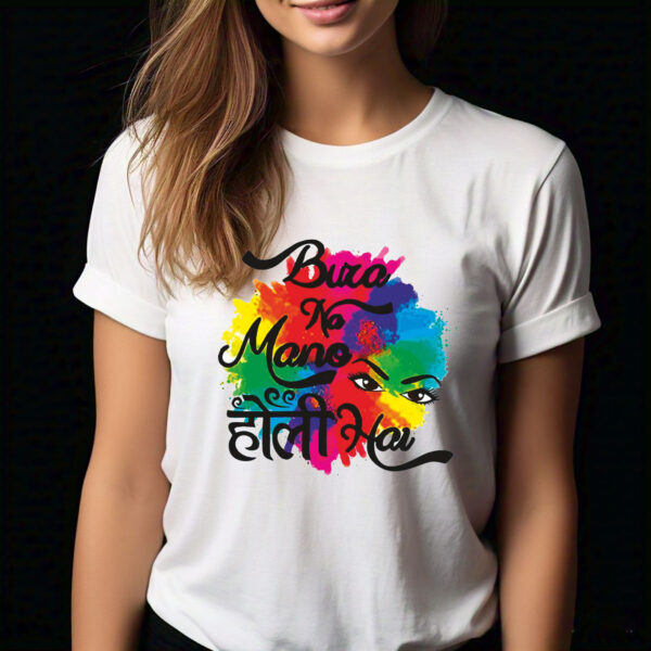 - Pattern: Vibrantly printed with “Bura Na Mano Holi Hai,” this T-shirt radiates festive cheer. As a result, it adds a playful and celebratory touch to your Holi wardrobe, making it a standout choice for the festival of colors.