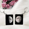 - Each keychain displays the moon phase corresponding to the partner’s birth date—one showing a crescent moon and the other a full moon.